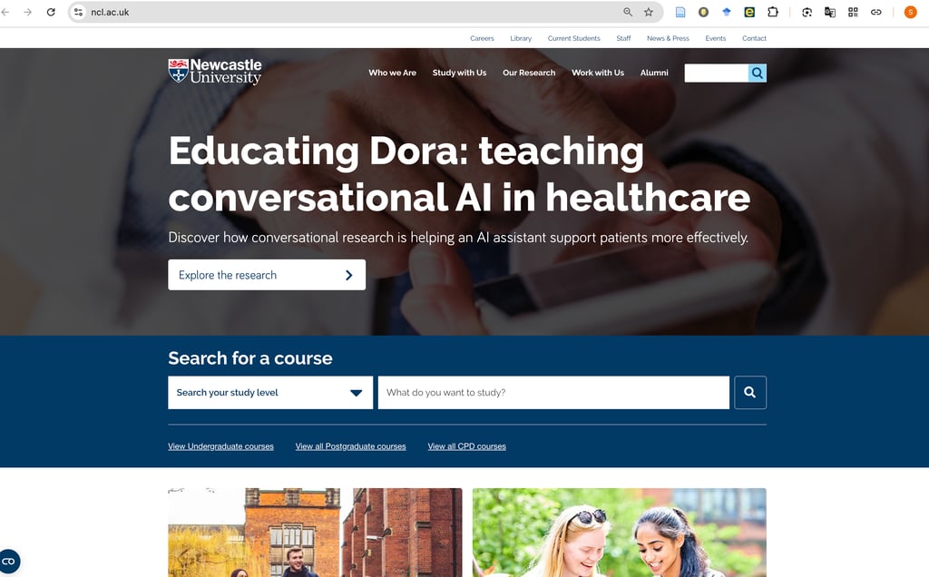 A blog post on conversational AI for healthcare, “Educating Dora — teaching conversational AI in healthcare to sound right,” was featured on Newcastle University’s homepage on 20–21 April 2026. The piece foregrounds the five-year research collaboration between Newcastle’s Interactional AI team and Ufonia Ltd, and locates Dora within a broader programme of applied linguistic research into voice-based clinical conversation.